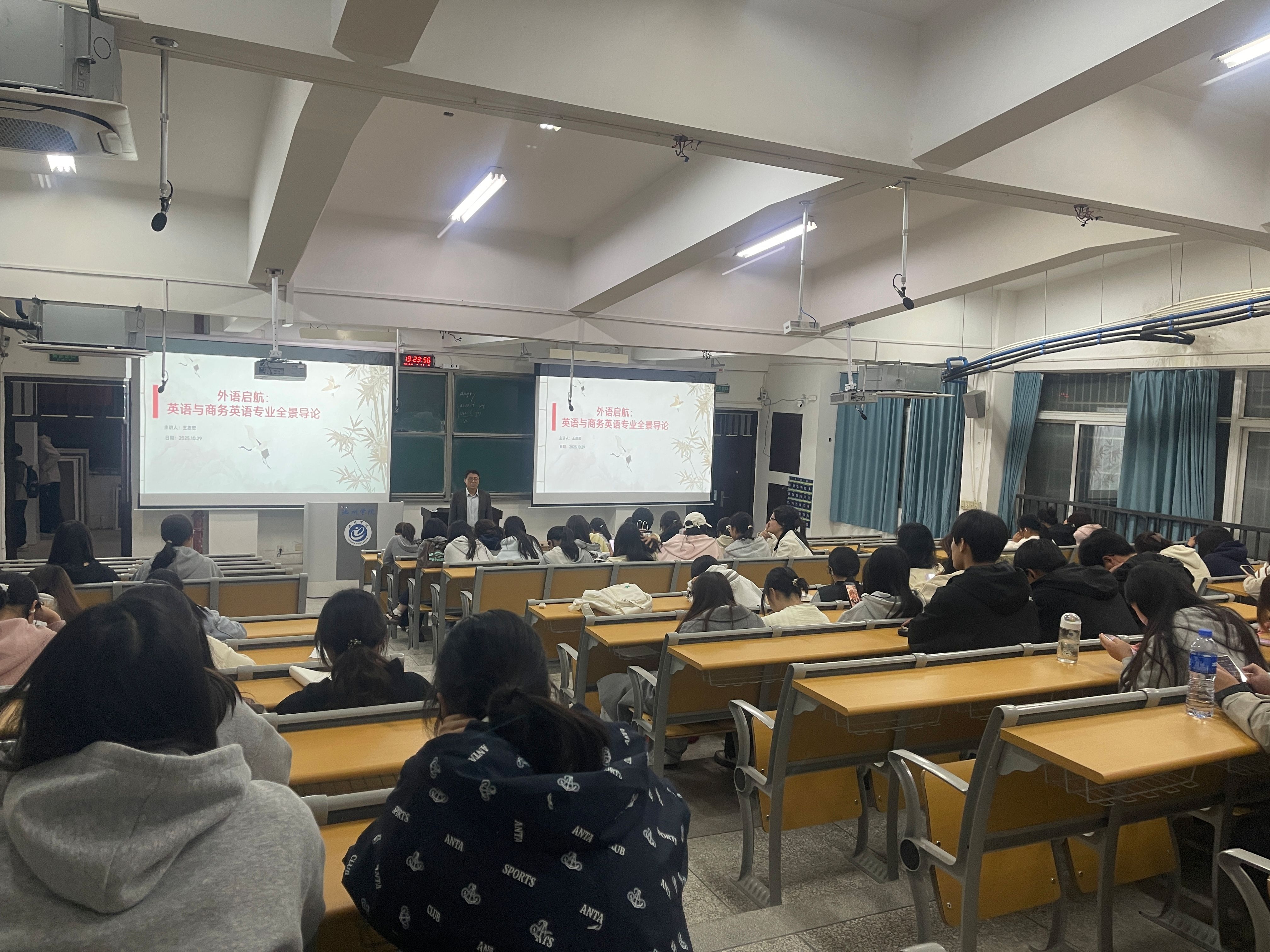 10月29日晚,威廉希尔williamhill教工二支部在博学阶301启动“党建+专业教育”特色项目,支部书记王志宏以“外语启航:英语与商务英语专业全景导论”为题,为2025级英语、商务英语新生开展入学教育。讲座将党性教育与专业导航深度融合,用数据、案例与路径图,把“小我”成长写进“大我”征程。