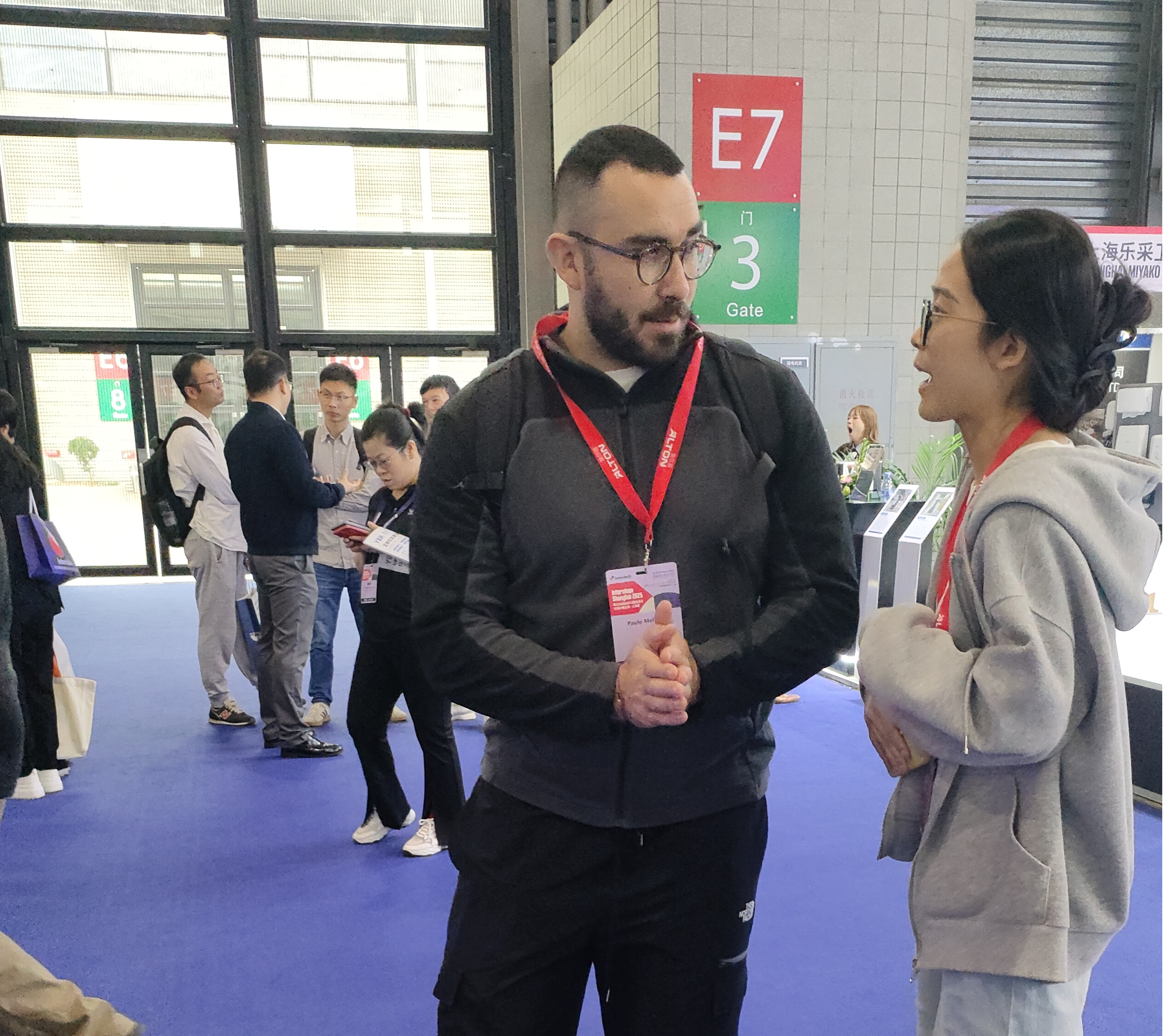 展会首日现场气氛热烈,开幕式由Interclean Shanghai项目经理张烨主持,中国城市环境卫生协会副会长秘书长刘晶昊、荷兰RAI锐昂展览集团Interclean全球展览总监Robert Stelling等重要嘉宾共同出席,携手开启清洁行业新篇章。观展期间,丁静静充分发挥商务英语专业优势,积极与多家国内外展商交流互动,协助完成现场翻译与沟通工作,并深入了解了清洁领域的最新产品与技术动向,展现出扎实的专业素养与综合能力。