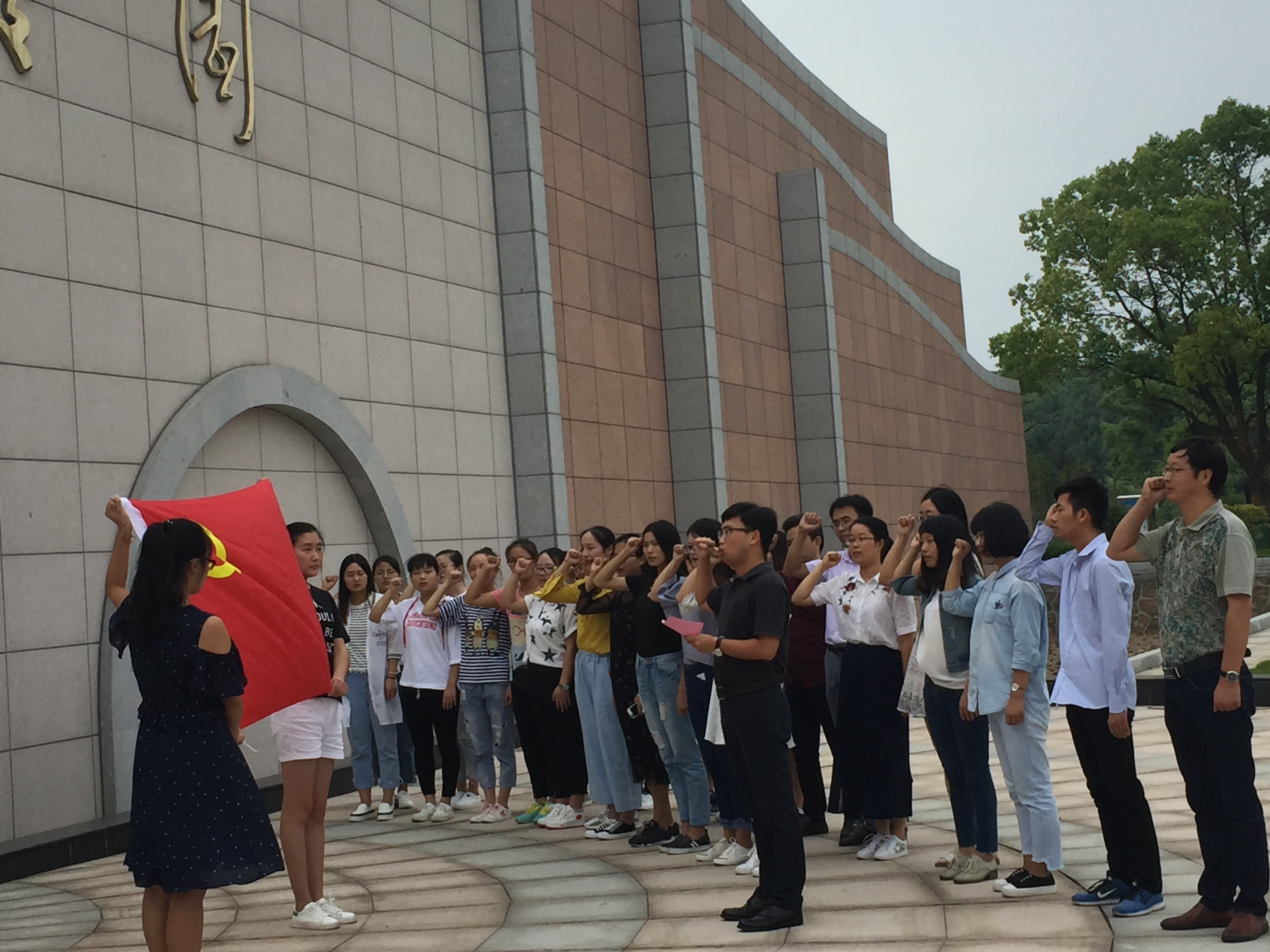 首先,在池州烈士陵园前全体教师党员和员工党员面对鲜红的党旗,进行庄严的宣誓,重温入党誓词。随后大家围绕革命烈士纪念塔慢行一圈,缅怀先烈,寄托哀思。最后大家参观了池州抗战纪念馆,了解了从土地革命、抗日战争到解放战争时期,在中国共产党领导下的池州将士英勇抗敌的斗争历史和光辉业绩。