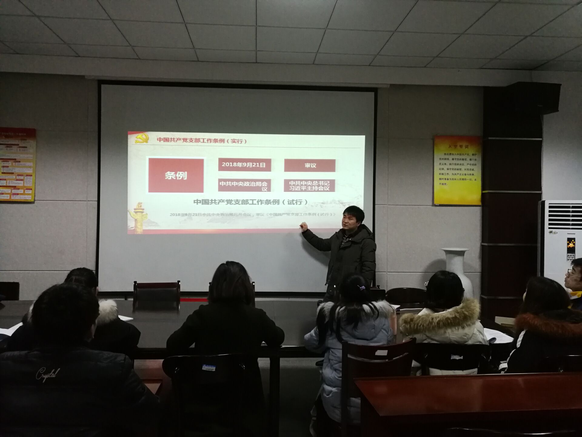 随后,刘军以“《中国共产党支部工作条例(试行)》解读”为题,给支部党员上课一堂专题党课。党课从《条例》出台的基本概况、全面提高新时代党支部建设质量、建设坚强的战斗堡垒、新《条例》内容逐条解读等四个方向对《条例》进行了详细的解读。他强调党的支部工作条例的制定和实施,对于加强党的组织体系建设,推动全面从严治党向基层延伸,全面提升党支部组织力、强化党支部政治功能,巩固党长期执政的组织基础,具有十分重要的意义,全体党员一定要认真学习和领会。