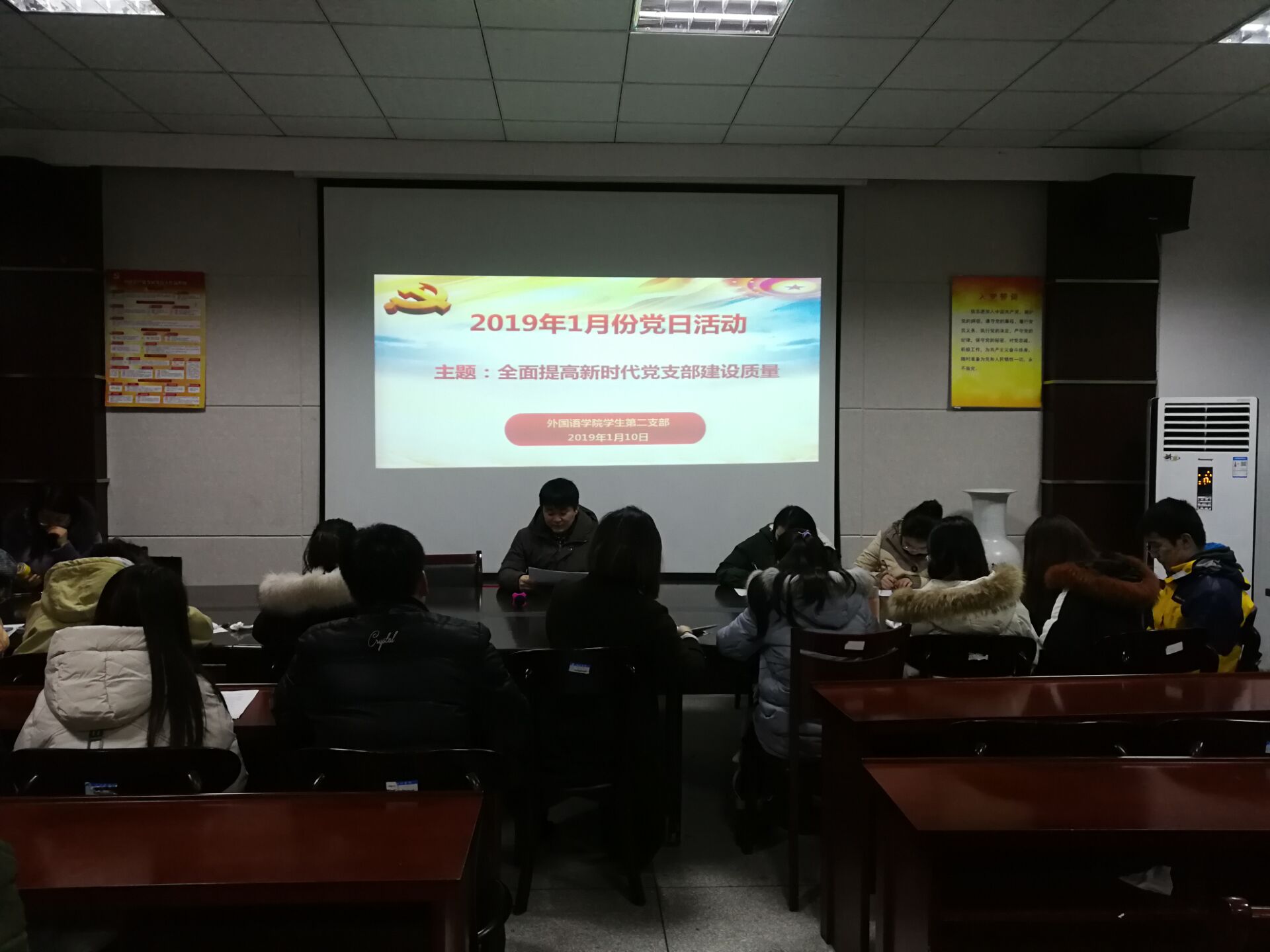 1月10日上午,威廉希尔williamhill员工二支部在会议室举行党员大会,开展“全面提高新时代党支部建设质量”主题党日活动。支部全体党员参加,活动由支部书记刘军主持。
