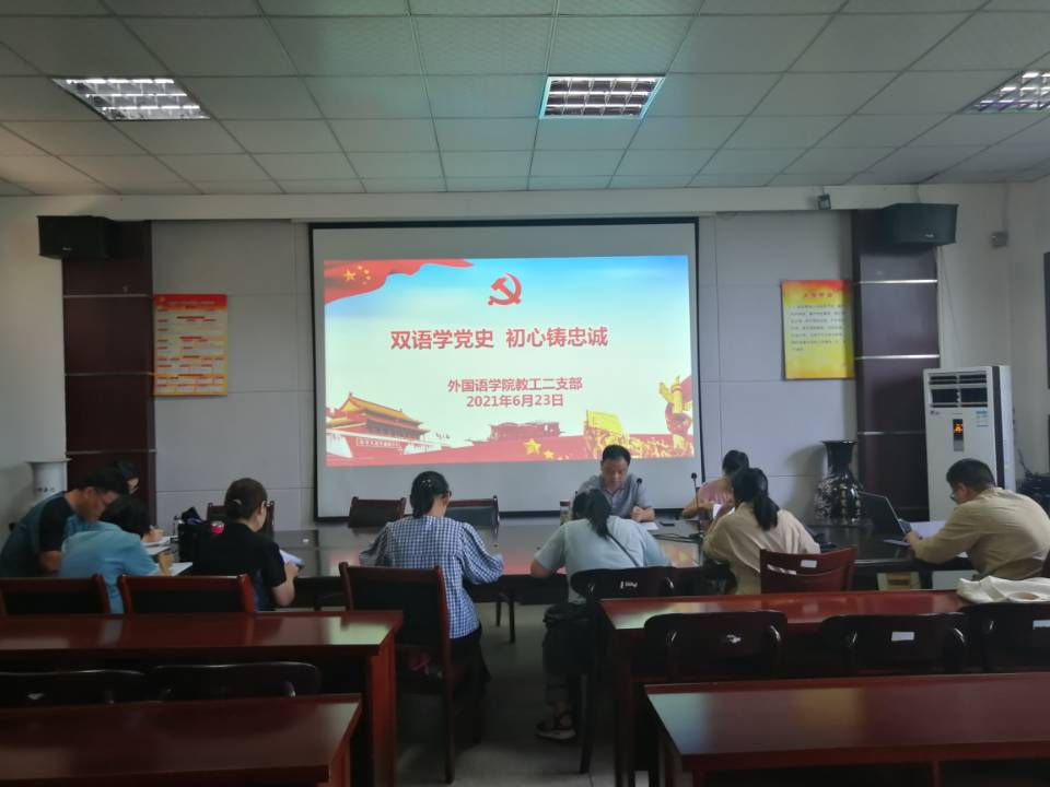 6月23日下午,威廉希尔williamhill教工二支部在会议室举行“双语学党史 初心铸忠诚”主题党日活动,开展党史学习教育。会议由支部书记李奕华主持。
