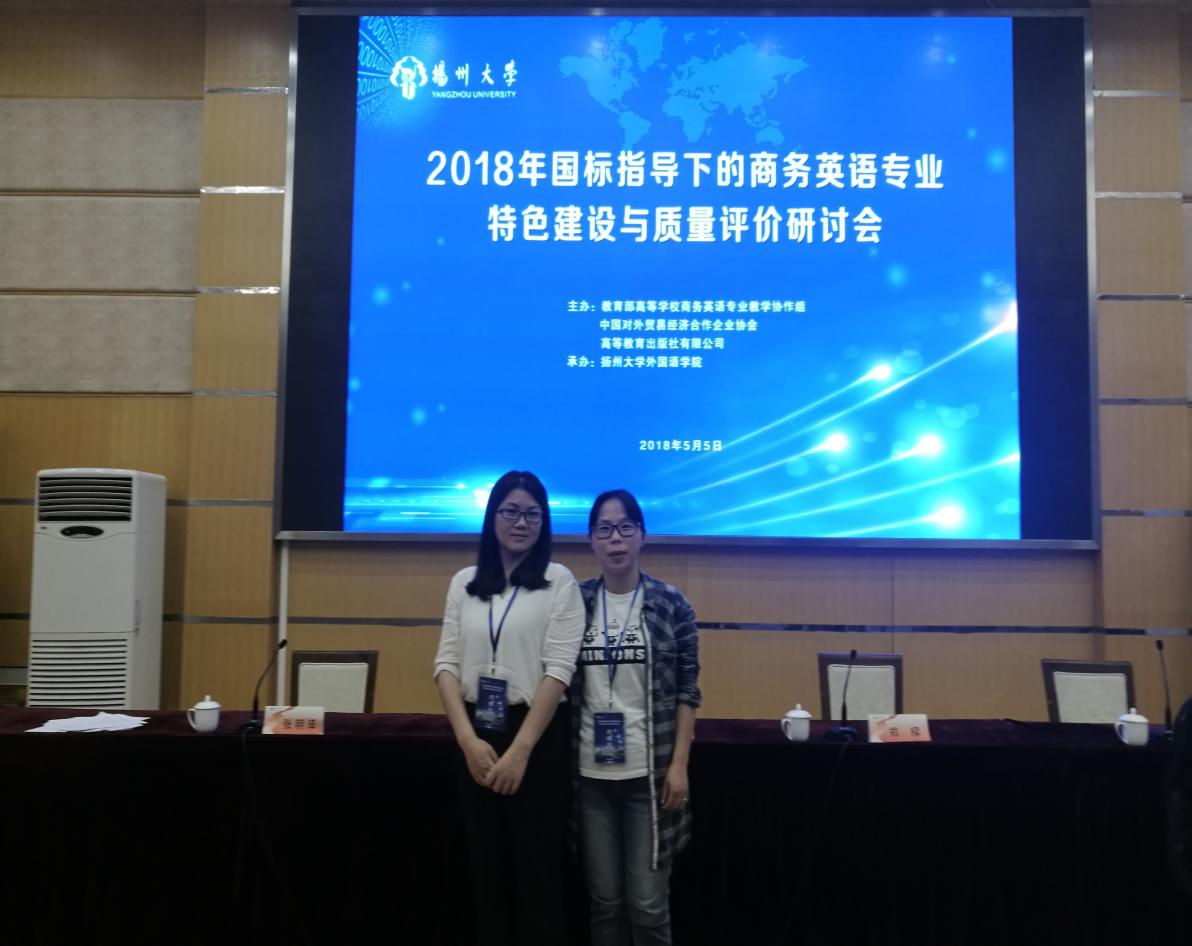 5月5日,由教育部高等公司商务英语专业协作组、中国对外贸易经济合作企业协会等主办的“2018年国标指导下的商务英语专业特色建设与质量评价研讨会”在扬州大学召开。威廉希尔williamhill教师洪牡丹、施秋香应邀参加了研讨会。