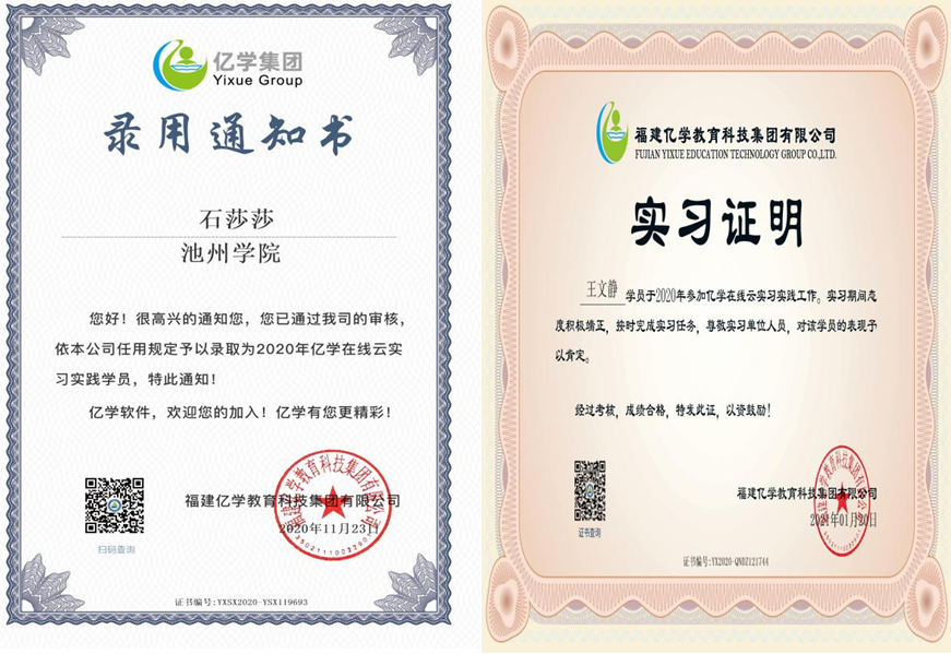 员工每周通过亿学在线云实习平台领取相应实习任务,按时、按质完成并提交实习任务成果,实习期间撰写实习调查报告,实习结束提交实习总结。参与云实习的员工通过专业的审核方可注册并发放实习录用通知书,实习合格才能获得亿学公司颁发的实习证明。通过理论知识的学习及相关跨境电商平台的实操体验,同学们了解和掌握跨境电商运营专员和亚马逊运营专员岗位的基本必备技能,并且实践能力得到了较大的提升。
