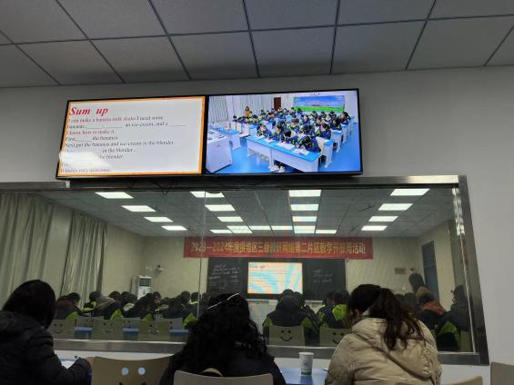 会议在池州市第二中学举办,代表们首先在演播教室观看曹银娥老师和张霞老师的示范课: Unit8 How to make a banana milk shake?,随后对两位老师的示范授课进行点评。实习生的现场点评和研讨心得得到了与会代表们的认可。