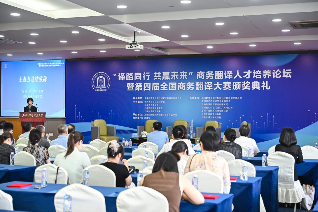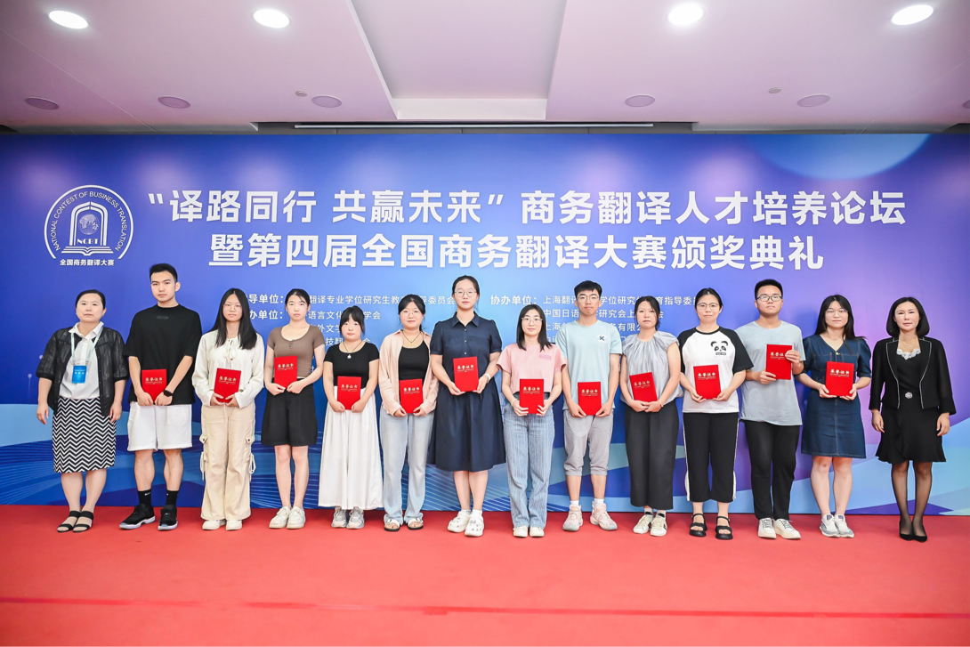 全国商务翻译大赛是在全国翻译专业学位研究生教育指导委员会指导下,由中外语言文化比较学会、上海市外文学会、上海市科技翻译学会和上海对外经贸大学共同举办,旨在推进国家翻译能力建设,为国家经济社会建设培养精通商务知识和翻译技能的复合型人才。共有来自全国各院校140名员工参加决赛,经过角逐,刘梦奇、徐亚欣荣获汉译法组优胜奖。