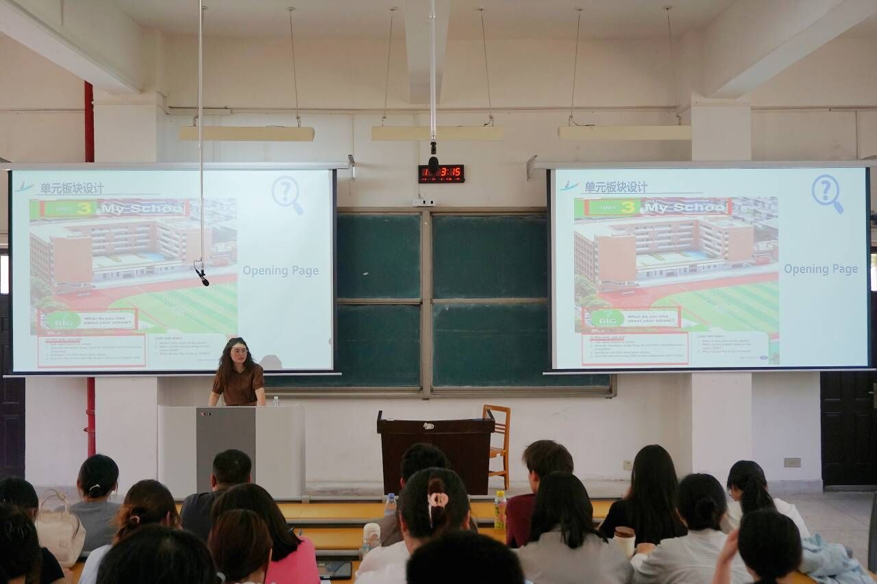 5月21日下午,威廉希尔williamhill外聘中学教师吴亚芳为英语专业员工讲授“英语教学法”专题课程,开展主题为《教材解析及教学设计案例分析》的实践教学。本次课程以人教版初中英语七年级上册Unit 3 My School为例,通过教材深度解析、教学案例展示与互动研讨,强化师范生对核心素养内涵的理解,探索课堂教学创新路径,为英语师范生的职业发展奠定坚实基础。