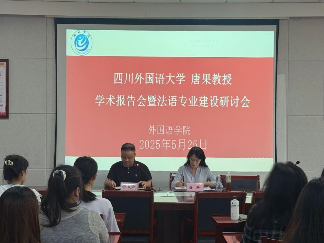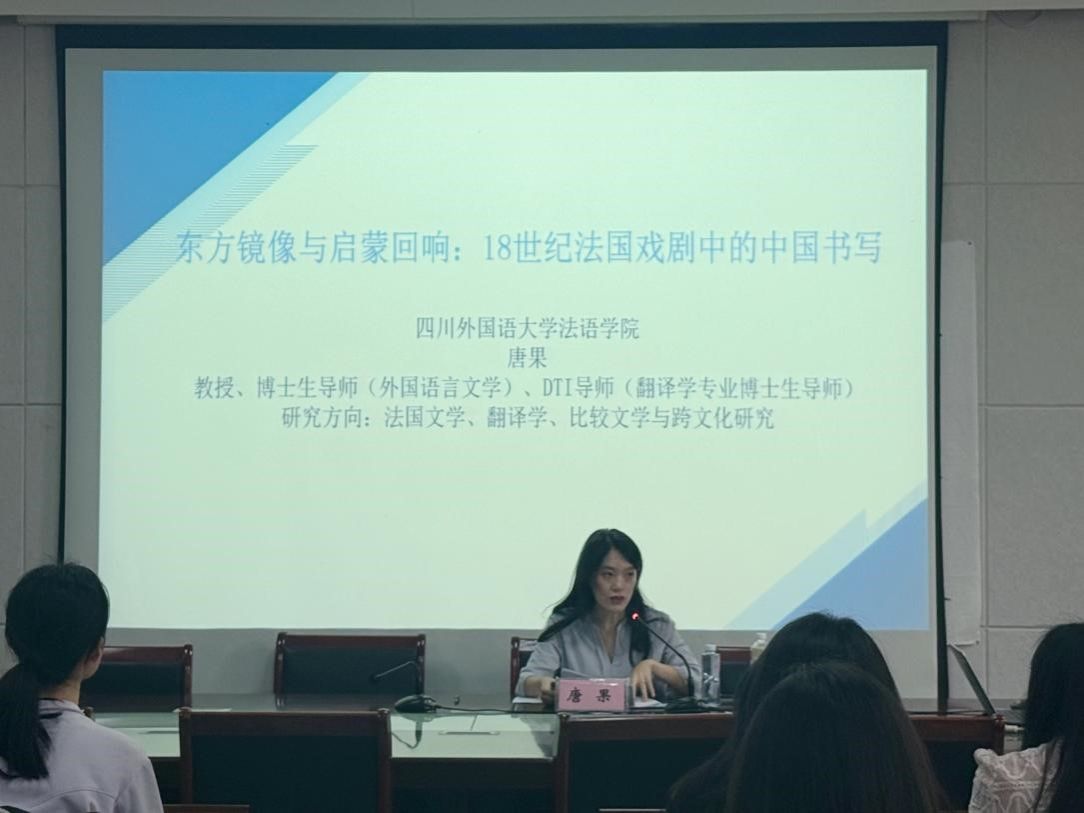 5月25日下午,四川外国语大学唐果教授应邀为威廉希尔williamhill法语专业师生带来了一场主题为 “东方镜像与启蒙回响:18 世纪法国喜剧中的中国书写” 的学术报告。报告会由公司经理余义兵主持,法语专业全体师生参加。