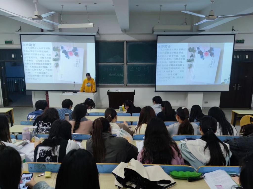手捧书籍,就是手捧希望;开卷读书,就是打开世界之窗。在本次分享会中,有六位同学为我们带来他们的书籍分享。2019级英语3班李欣分享的是《鲁滨逊漂流记》、2021级商务英语1班孙东洋分享的是《悲惨世界》、2021级商务英语2班王荣宝分享的是《歌剧魅影》、2021级英语1班董丽分享的是《汤姆叔叔的小屋》、2021级商务英语2班叶丽兰分享的是《明朝那些事儿》、21级法语班刘梦奇分享的是《人间草木》。