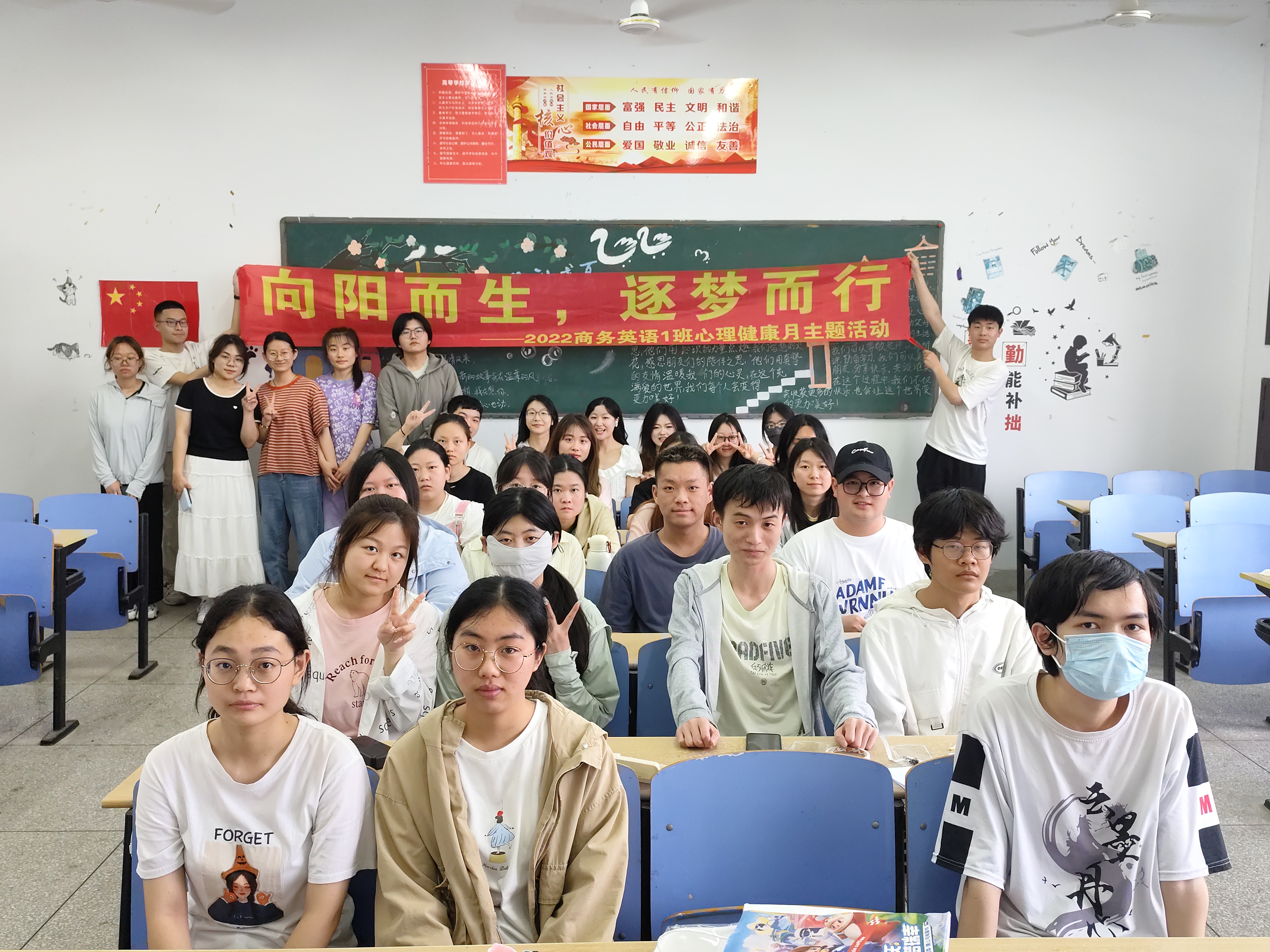 5月21日下午,2022级商务英语1班在博学楼南401教室开展了“向阳而生,逐梦而行”心理健康月主题手工制作活动,该活动由心理委员管程程主持,班级全体同学和辅导员程倩倩共同参与,探讨心理健康知识,分享彼此的心声。