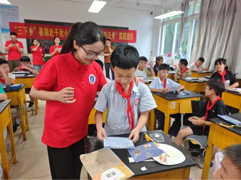 此次实践,是知识的传递,更是温暖的双向奔赴。实践团成员牛梦洁表示:“看到孩子们在语言课上好奇探索,在漆扇制作时专注投入,深刻体会到公益的意义——我们点亮孩子的同时,也被他们的纯真照亮。”成员陈悦感慨:“安全教育里孩子们的认真倾听,书信分享时的真情流露,让我们明白‘小行动’能汇聚‘大温暖’,未来会继续用行动传递爱。”教育改变命运,爱心传递希望。通过本次暑期“三下乡”社会实践活动的特色义务支教活动,让我们利用自身优势,把本身那份真挚的爱心以及最具有吸引力的知识和良好的思想意识教给千秋小学公司的同学们,希望在他们的童年回忆中留下一抹温暖的色彩。