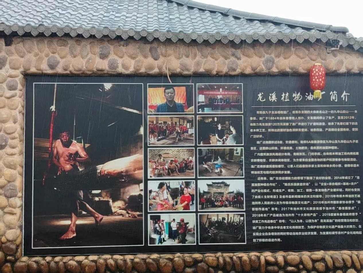 午后,在蒙蒙细雨中,实践团走进古色古香的龙溪油坊。作为市级非遗项目“朱备木榨油技艺”所在地,龙溪油坊有着百余年历史。据清代《青阳县志》记载,宋末元初时期,这里已形成"十里油坊连市井"的盛况。青通河商船载着压榨的茶油、菜油往返于徽州与池州之间,让"朱备榨油"成为皖南商帮的重要贸易符号。如今,龙溪油坊作为市级非遗保护单位,完整保留了石碾、榨槽等老物件,还原古法榨油流程。在市非遗传承人、九子龙溪植物油厂创办人陈立的带领下,百年榨油技艺在传承中焕新,成为朱备镇传统文化的代表符号。