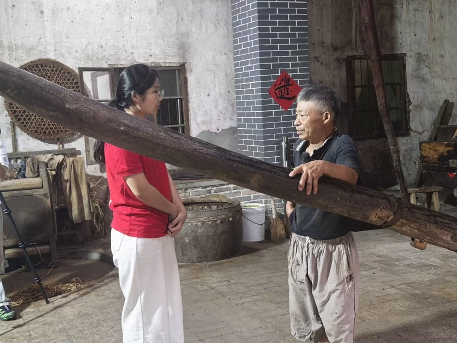 6月25日,我们与油坊管理人陈立和榨油师傅展开深度对话。老师傅讲述着坚守技艺的岁月故事,道出对传承的担忧与期盼。陈总则立足龙溪油坊,讲述如何创新搭建专属小程序销售平台,为村民拓宽销售渠道。将木榨油、特色农产品等“搬”上云端,打破地域限制,让朱备的农特产品更好地走出去。在他们的娓娓道来中,我们既感受到了千年技艺传递的温暖,更清晰地看到非遗赋能乡村振兴的壮阔图景。
