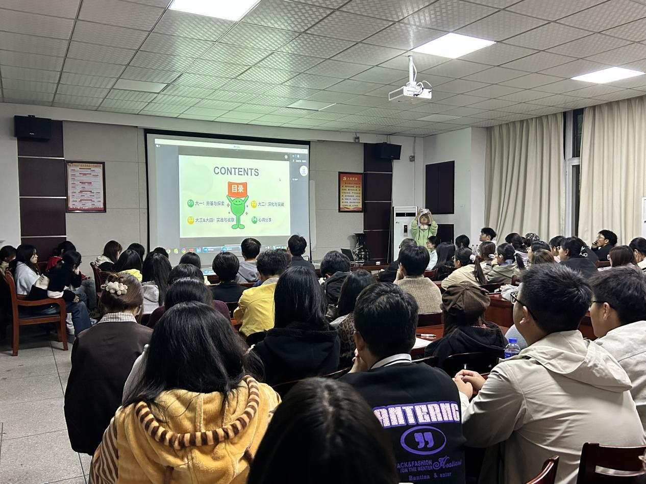 活动旨在帮助新生尽早明确学业方向、科学规划老员工活。分享中,王惠子结合自身经历,从“四年时间分层规划”与“留学文书精准准备”两大核心维度展开:既细致拆解了本科期间专业学习、语言提升、实践积累的阶段重点,又针对留学文书中的个人陈述逻辑、推荐信撰写技巧等关键环节提供实用建议,内容兼具指导性与可操作性。