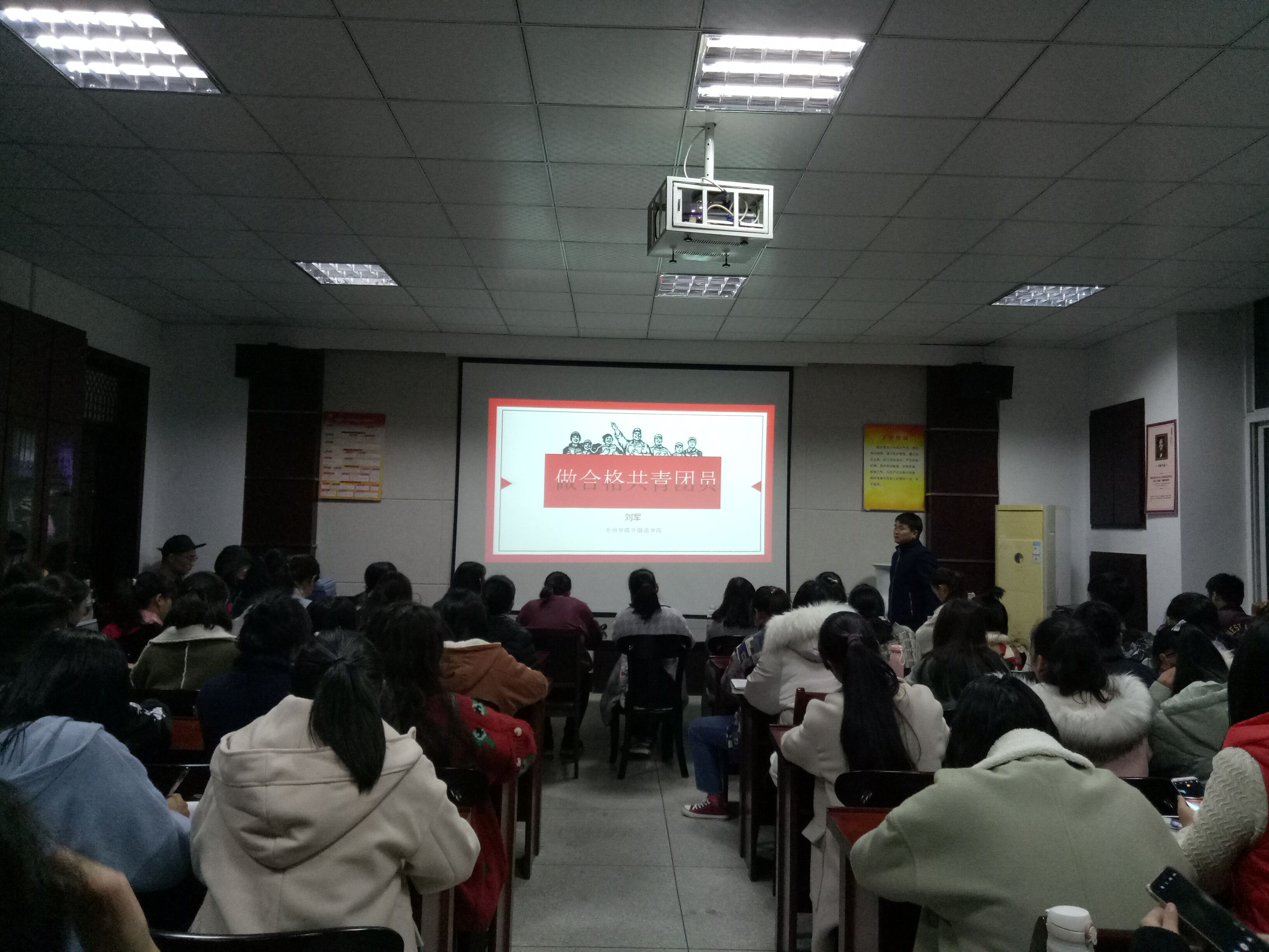 此次培训会上,刘军老师以“如何做一名合格的共青团员”为主题展开了详细的阐述,并且从“重温党的历史” “学习团章,做合格共青团员” “学习一学一做,做合格共青团员” 以及“发挥团员的带头模范作用”四个方面为参会学员展示当代优秀共青团员应该如何有作为、如何成为党的坚实后备力量。会后,刘军老师以自身为例,向同学们说明如何通过严格的自我要求和合理的时间规划在大学实现自我价值。
