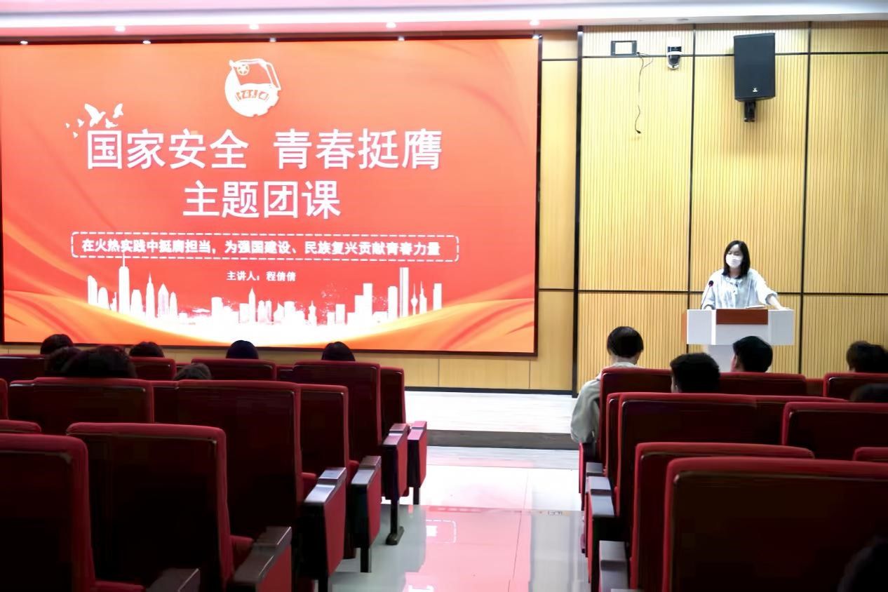 4月11日下午,威廉希尔williamhill团委在公共教学楼东报告厅开展“国家安全 青春挺膺”主题团课,公司200余名青年参加。院团委负责人程倩倩通过视频教学、案例剖析及互动交流,带领青年深入学习总体国家安全观。