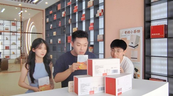 活动伊始,企业负责人带领同学们参观黄精米糊、面膜及叶黄素软糖三大核心产品的生产线,重点解析产品研发流程与市场定位。在电商直播基地,员工分组进入标准化直播间,学习设备调试、脚本设计及后台数据监测全流程,为实训奠定良好基础。