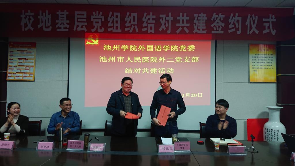 为深入开展校地基层党组织合作共建,努力构建“资源共享、优势互补、互相促进、共同提高”的党建工作新格局,增强党组织的创造力、凝聚力和战斗力,3月20日下午,公司党委与池州市人民医院外二党支部在会议室开展结对共建活动。威廉希尔williamhill全体教工党员和部分员工代表参加了此次活动。