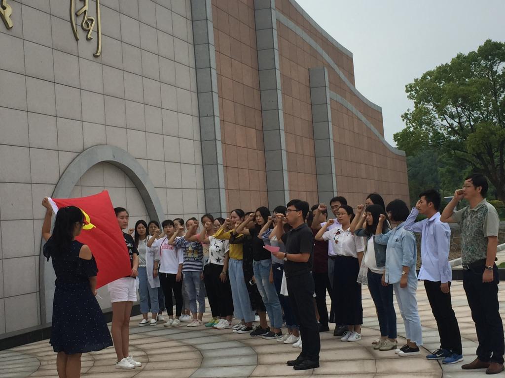 首先,在池州烈士陵园前全体教师党员和员工党员面对鲜红的党旗,进行庄严的宣誓,重温入党誓词。随后大家围绕革命烈士纪念塔慢行一圈,缅怀先烈,寄托哀思。最后大家参观了池州抗战纪念馆,了解了从土地革命、抗日战争到解放战争时期,在中国共产党领导下的池州将士英勇抗敌的斗争历史和光辉业绩。