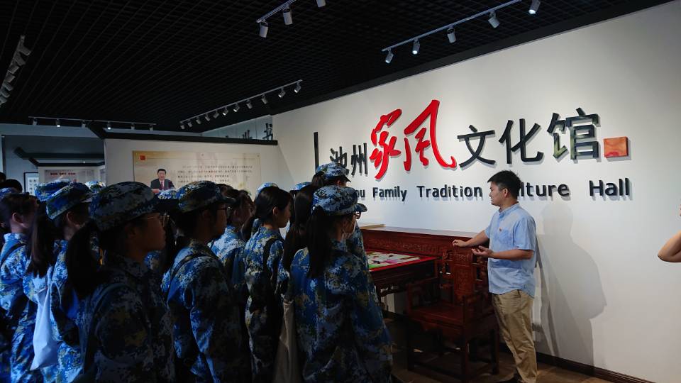 新生们整齐统一着军训服,井然有序地在辅导员的带领下依次进入家风馆进行参观。党委副书记刘军要求大家,要认真学习好家风,传承中华民族传统美德,并在今后老员工活中积极践行,促学风,正校风。