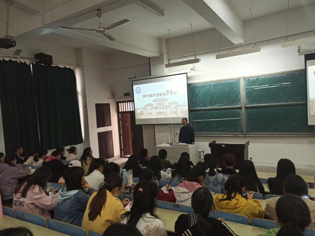 11月13日下午,威廉希尔williamhill副经理(主持工作)余义兵副教授作题为“新中国外语教育70年”学术报告,2019级新生及部分教师参加报告会,报告会由公司党委书记张乐民主持。