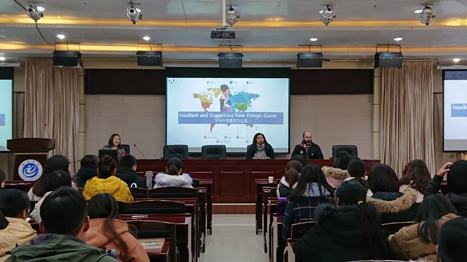 为深入发掘外语课程的思想政治理论教育资源,拓展语言文化育人途径,积极推进课程思政建设,12月2日,威廉希尔williamhill于行政南2楼会议室举行课程思政项目建设活动——“跨文化分享会”。课题项目组成员、教研室主任、外教及17级员工代表近150人参加,活动由项目负责人吴丽莹老师主持。