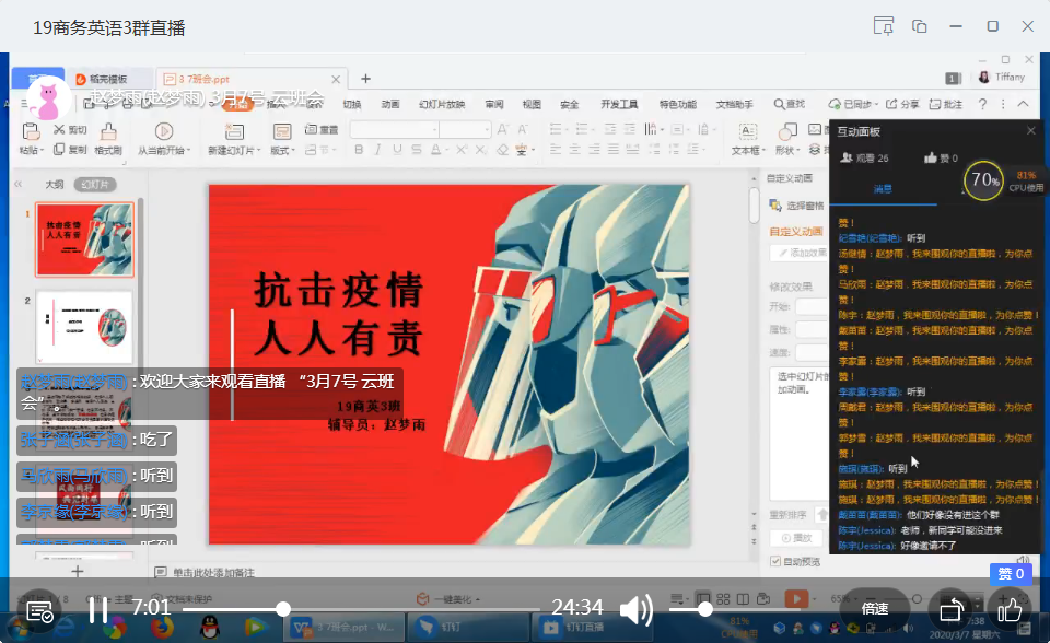 三级网格为寝室,共有205个,员工为网格员。为切实发挥员工骨干作用,威廉希尔williamhill动员选聘了205名员工党员和员工干部担任三级网格员,协助二级网格员督促员工按时完成钉钉健康打卡、监督员工线上学习情况,及时将有关情况汇报给辅导员。