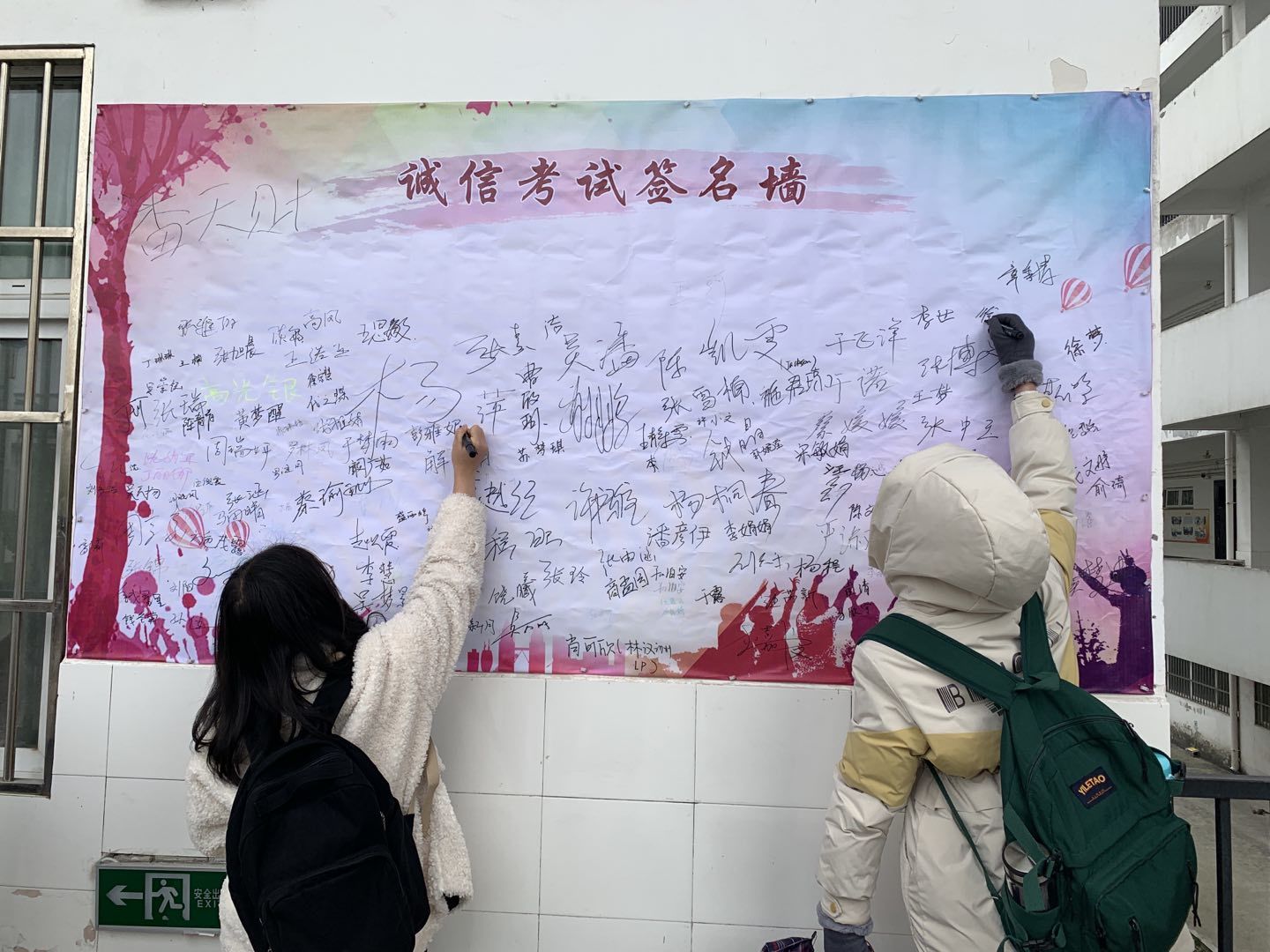 积极营造诚信考试氛围。为加强员工诚信教育,威廉希尔williamhill要求员工党员佩戴党员党徽参加考试,为同学树立榜样。同时向全体同学发起诚信考试倡议、在博学楼前设置诚信考试签名墙、举行诚信考试主题黑板报评选等活动。