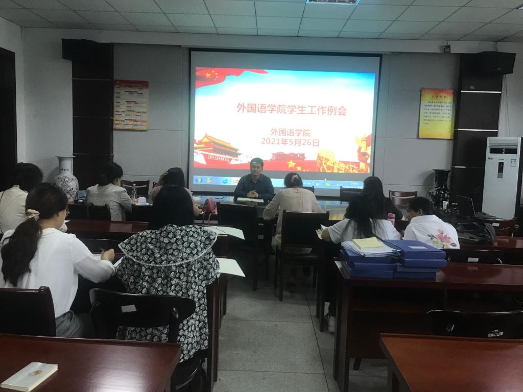 会上,刘军对期中员工工作检查情况进行了通报、指出存在的不足和需要改进的地方。随后他结合员工思想教育、疫情防控和安全、学风建设、心理健康、创新创业、毕业班工作等方面做了具体布置和要求。