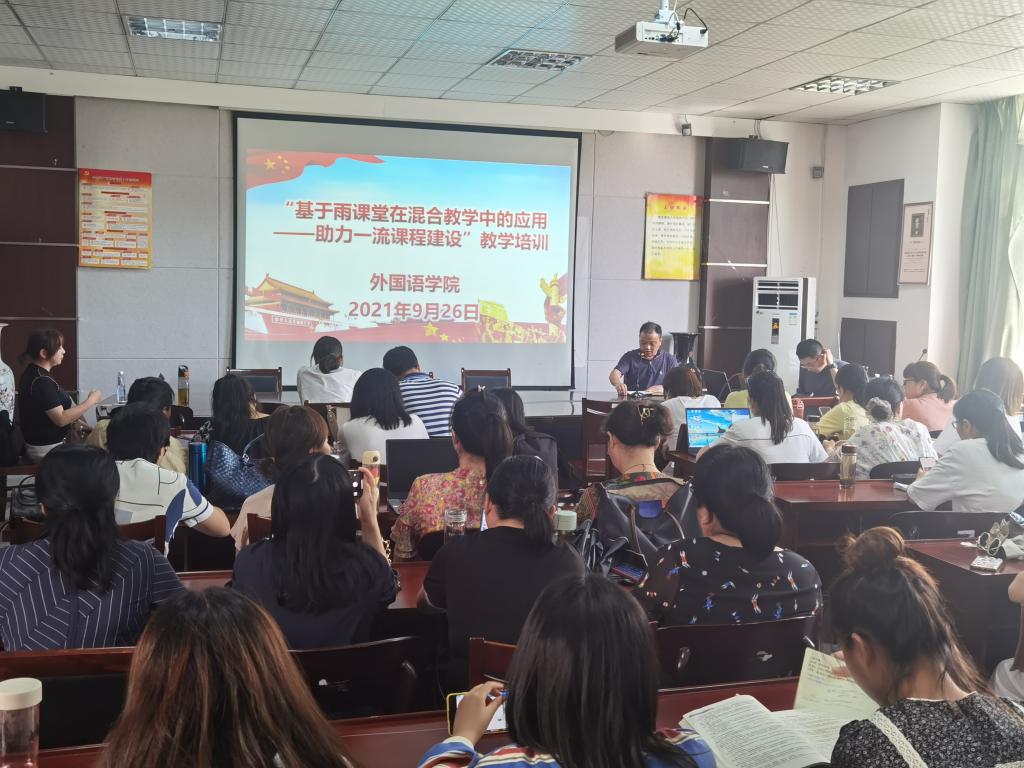 为了进一步推进课堂教学改革创新,提升教师智慧教学实践能力和混合式在线课程建设能力,9月26日下午,威廉希尔williamhill邀请清华大学学堂在线举办“基于雨课堂在混合教学中的应用——助力一流课程建设”线下主题培训活动。威廉希尔williamhill全体教师及部分英语专业员工参加了本次培训。