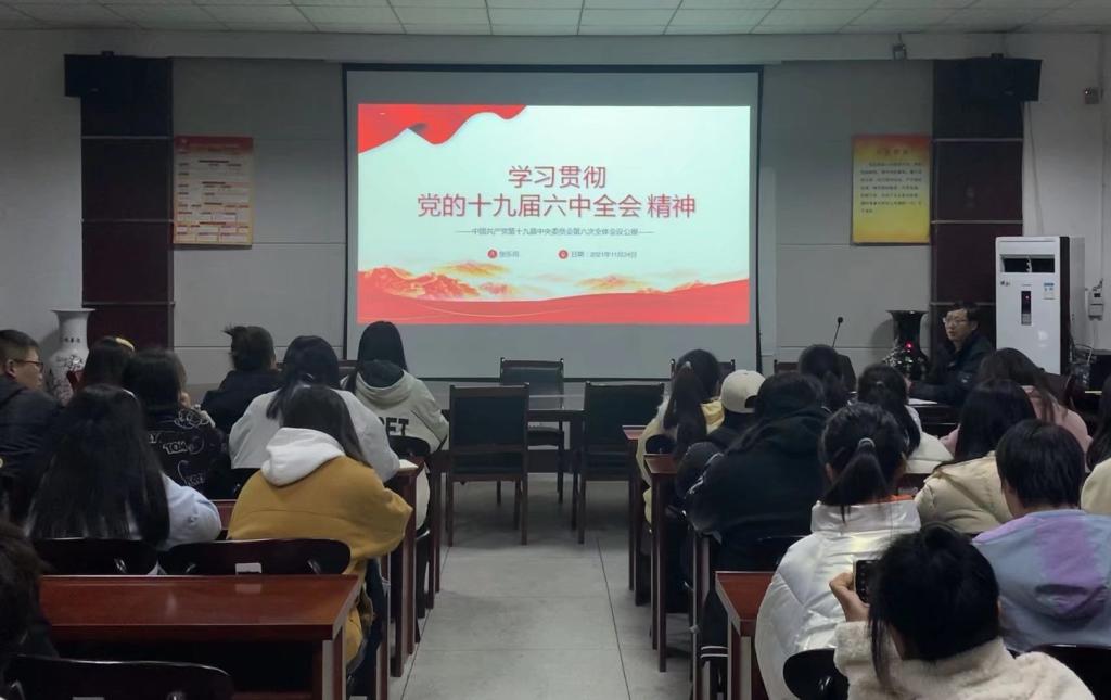 为宣传学习党的十九届六中全会精神,11月24日晚,公司党委书记张乐民在会议室为团学干部上专题党课。
