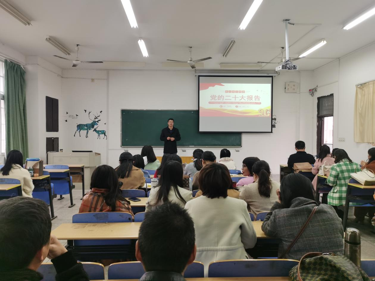 11月16日下午,公司党委书记张乐民在博学南403教室为全体教职工讲题为“深入学习贯彻党的二十大报告”的主题党课。