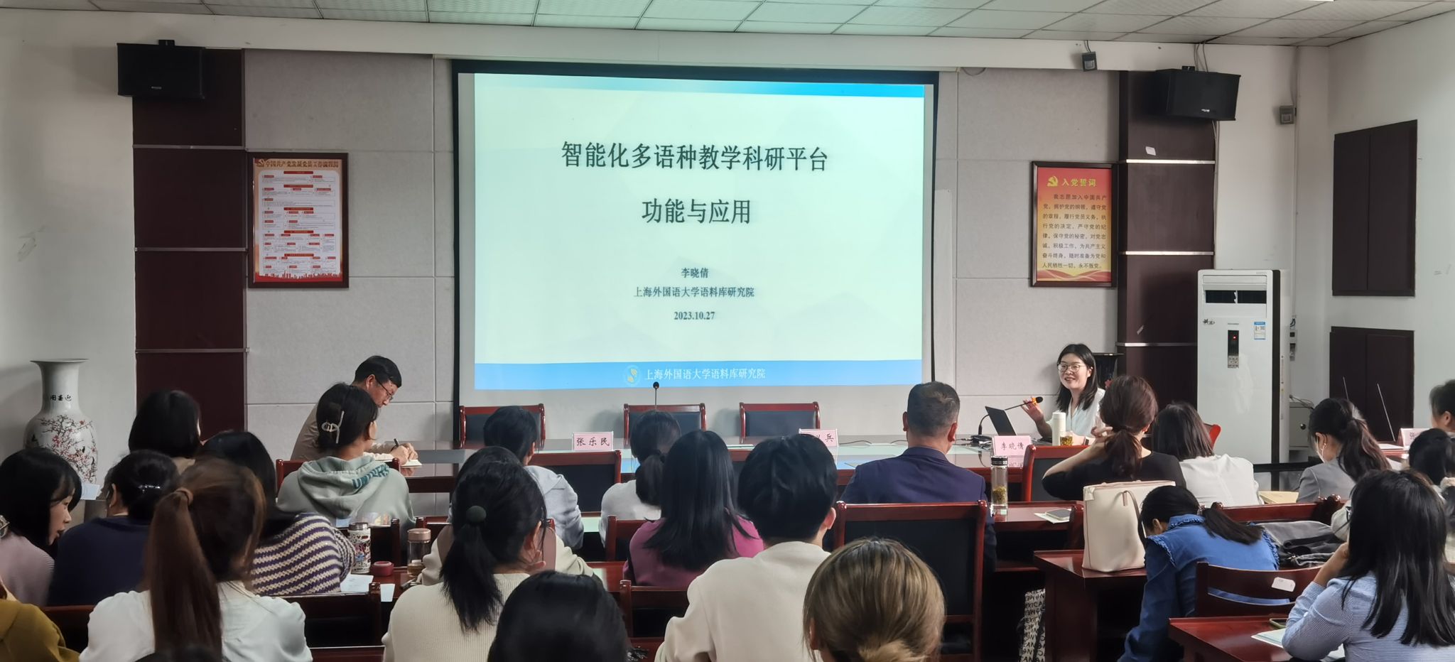 10月27日,威廉希尔williamhill邀请上海外国语大学语言料库研究员博士后李晓倩作题为“智能化多语种教学科研平台的功能与应用”的学术报告。报告由威廉希尔williamhill经理余义兵教授主持,威廉希尔williamhill全体教师及部分员工代表参加。