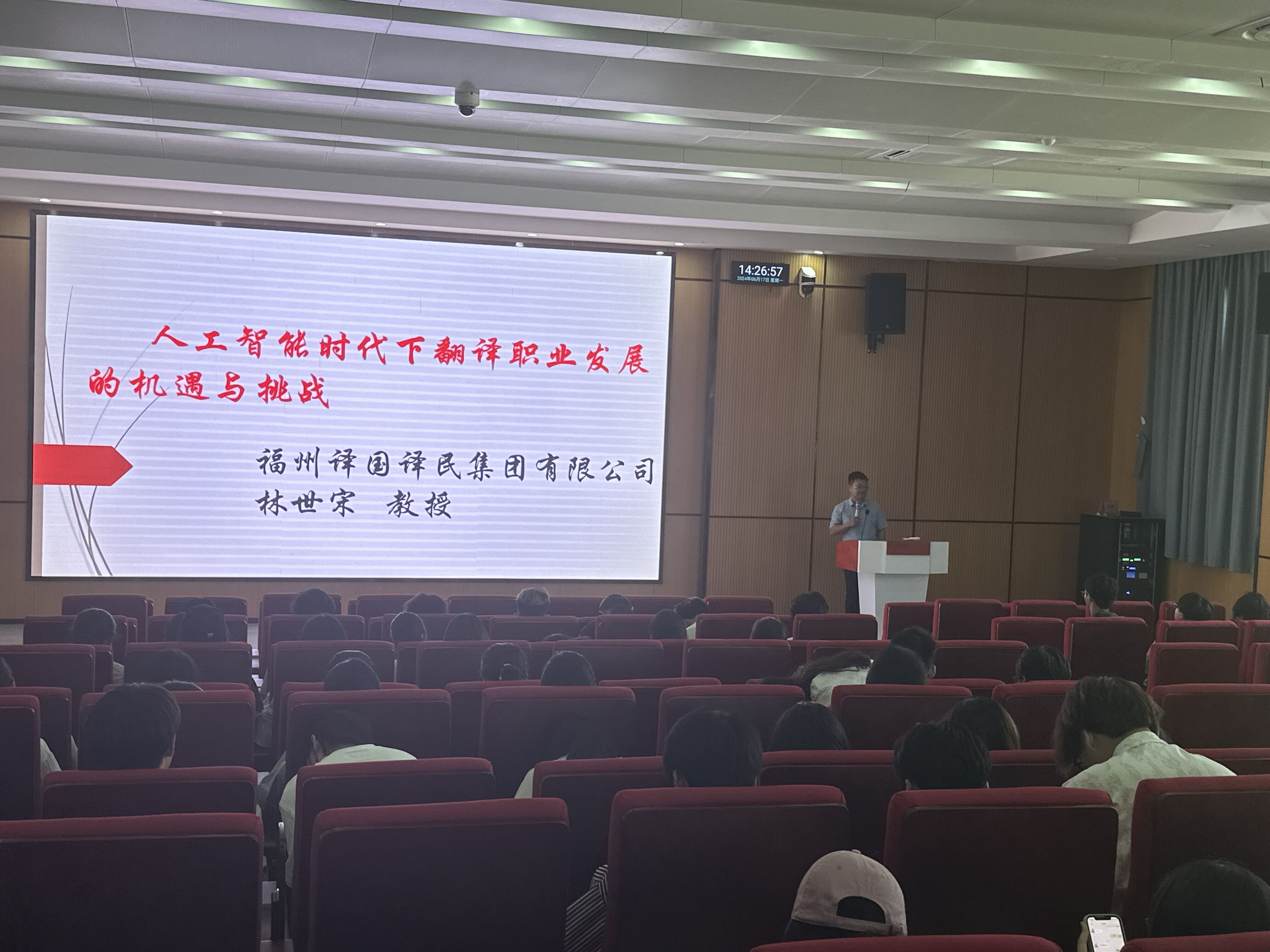 合作交流会前,在公教楼东学术报告厅,林世宋为威廉希尔williamhill员工作了题为“人工智能时代下翻译职业发展的机遇与挑战”的学术报告。报告介绍新时代翻译的新挑战、翻译行业在信息技术高速发展中的新困惑及人工智能时代下翻译行业发展趋势。报告认为,要正确认识翻译职业未来的发展,不断提升技术素养,强化翻译研究和翻译实践,尽快适应新形势,充分利用新技术,为更好步入社会提前做好充分准备。