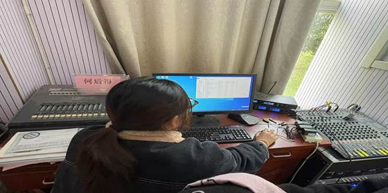 幕后支持:技术保障确保比赛顺利进行。实习生王李媛负责操作PPT和背景音乐,保障了每一位参赛选手顺利展示。从准备阶段到比赛全程,她与员工不断沟通,调整展示效果,以最佳的形式呈现员工的朗诵内容。